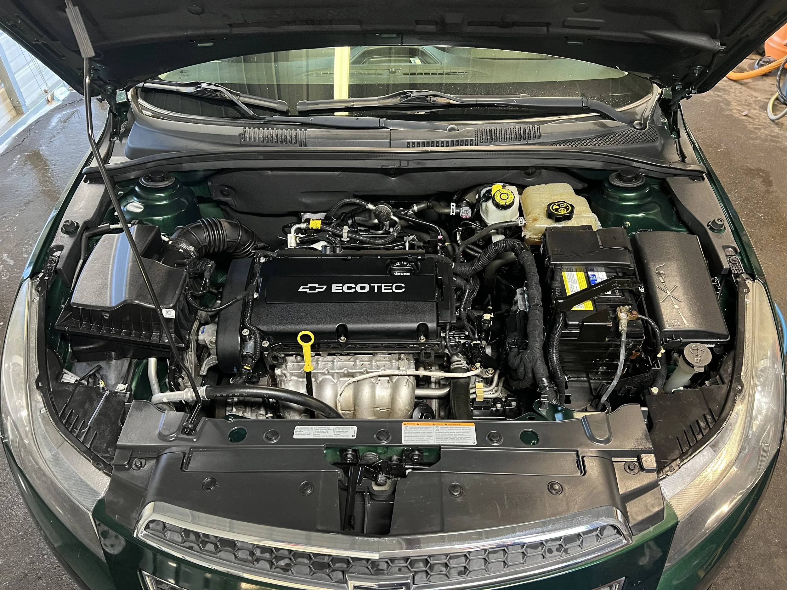 We will not complete the service if the whole engine bay is completely covered in oil and grease. We can only do so much when cleaning an engine bay. We clean areas we can get to…we do not go underneath the vehicle and etc.