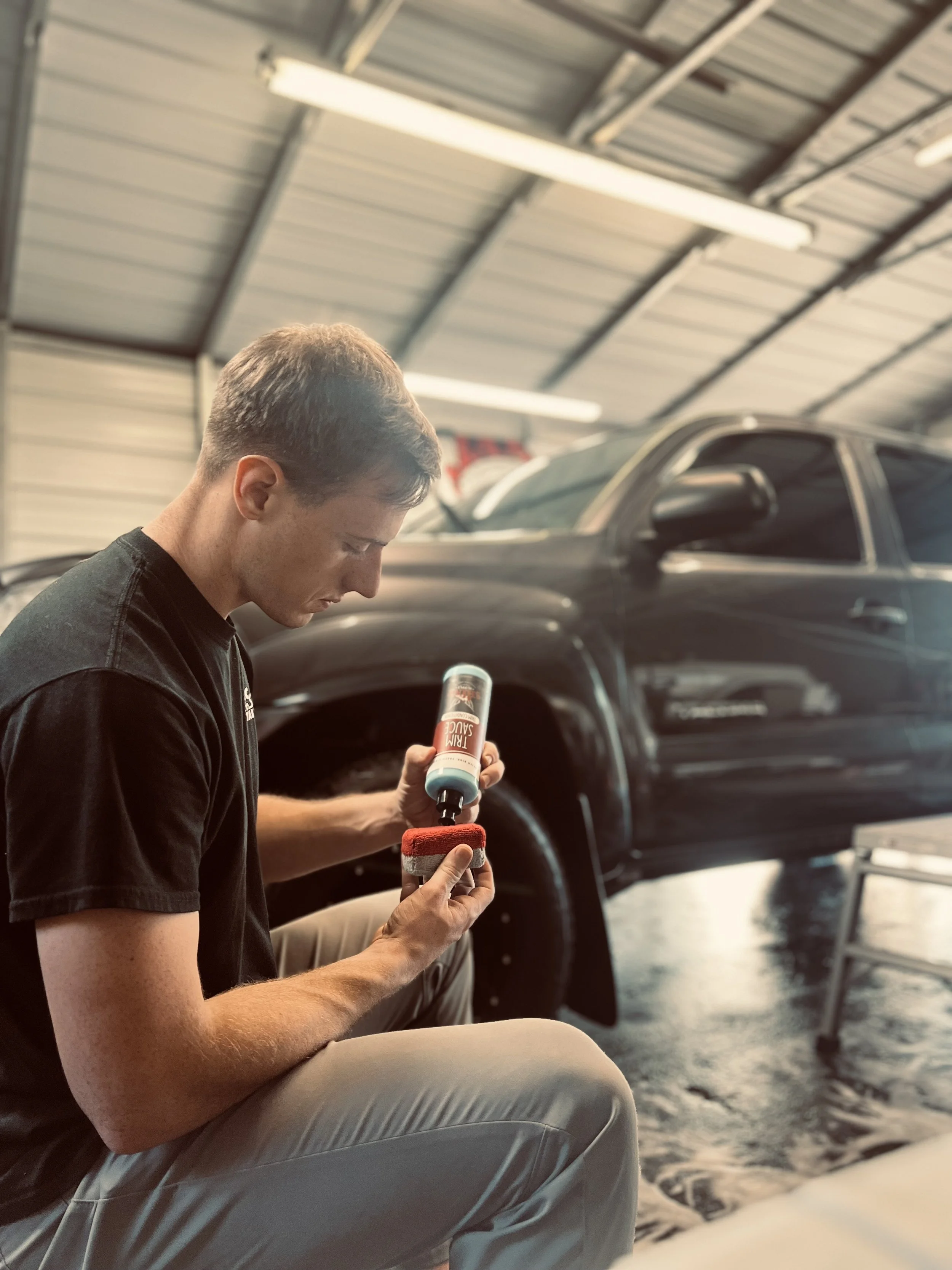 Wash & Wax: Do you want to add shine and protection to your paint? This service does just that, your vehicle will be slick and shiny! You will receive a hand wash & dry, removing bugs, dirt, road debris, and bird poo. We will then add our wax that will give protection for 3-6 months. The vehicle’s trim will also receive protection that has shown to last for a couple of months! We make sure all of the wheels/tires are clean and spotless, including the door jambs and exterior windows & glass.